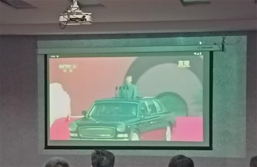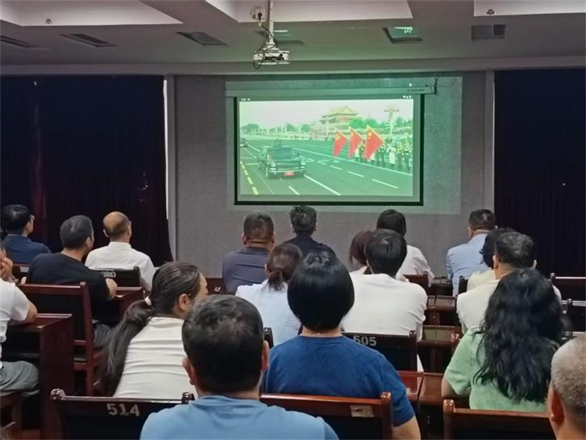 上午大家早早来到会议室,期待共同见证这一意义非凡的历史时刻。当屏幕上出现中国人民解放军整齐的方队、先进的武器装备时,会议室内不时发出阵阵赞叹声。雄壮的国歌声响彻会场,威武整齐的受阅部队和现代化国防装备依次亮相,充分展示了我国国防建设取得的辉煌成就。大家深受震撼,纷纷表示本次阅兵充分展示了我国强大的国防实力和维护和平的坚定决心,进一步增强了民族自豪感与历史使命感。